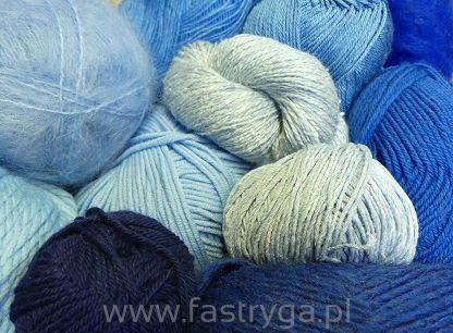 Włóczki w odcieniach niebieskich i granatowych