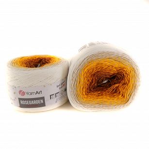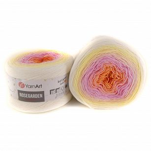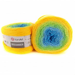 Cieniowana włóczka bawełniana. Wspaniałe motki przypominają swoimi kolorami pąki rozkwitających kwiatów. Włóczka jest miękka i łagodna w dotyku. Na szal lub chustę wystarczy tylko jeden motek. Ta włóczka składa się z 4 cienkich nitek skręconych ze sobą . Producent wybrał piękne soczyste przejścia i zestawienia kolorystyczne. Włóczka jest dość cienka dzięki temu dzianiny są lekkie u zwiewne . Zaleca się pranie ręcznie lub w trybie delikatnym w pralce w temperaturze wody 40°C, suszenie ułożone na poziomej powierzchni i prasowanie z minimalną mocą. Włóczka jest idealna do robienia szali, sukienek lub etoli, pledów, swetrów, tunik, kamizelek, ale także koców i poduszek.