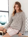 - Na sweter damski w rozmiarze 38-40 potrzeba około 400 gramów, czyli 8 motków.