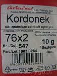 Nici zdobnicze do robót recznych.100% baweny. Motek 10 gram 65 metrów.