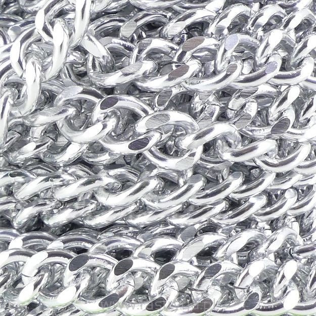 Łańcuch metalowy w kolorze srebrnym.