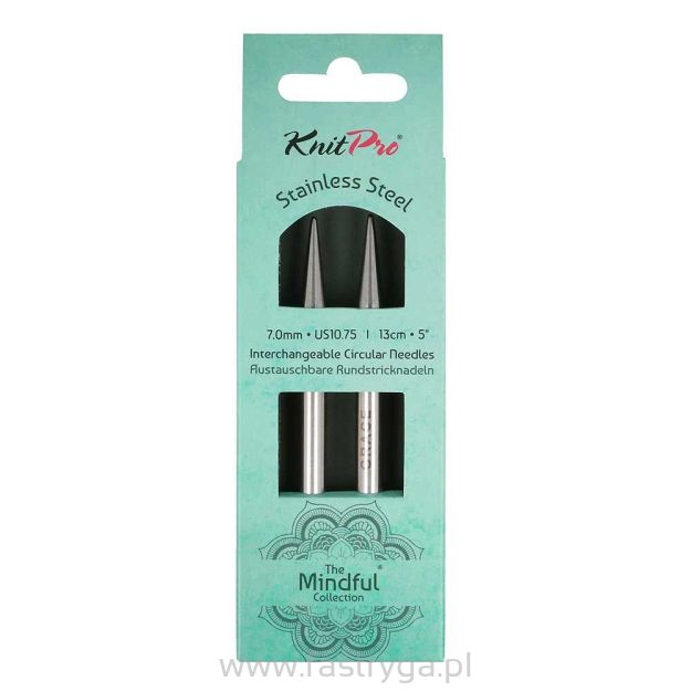 Wymienne okrągłe igły do robienia na drutach z kolekcji Mindful firmy KnitPro zapewniają wysoką jakość i wygodę podczas robienia na drutach. Są wykonane ze stali nierdzewnej i mają gładką, wypolerowaną powierzchnię, która idealnie ślizga się pomiędzy materiałami.