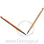 Dwa podwójne identyczne szydełka bambusowe połączone giętką, przeźroczystą, nylonową żyłką z niklowanym, miedzianym złączem. Haczyki swobodnie obracają się na kablu. Rozmiar igły jest trwale nadrukowany laserowo na każdym szydełku.